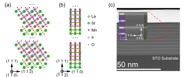 研究利用自主搭建的脉冲激光沉积系统,生长出具有锐利原子级界面质量的铱酸锶/锰酸镧锶超晶格,并通过多种先进表征手段,证实界面结构的高质量与低原子扩散特性。磁输运测量显示,该体系在接近300K的温区内表现出稳定的铁磁绝缘行为;X射线磁性圆二色测试证实,室温铁磁性起源于锰酸镧锶的双交换相互作用。